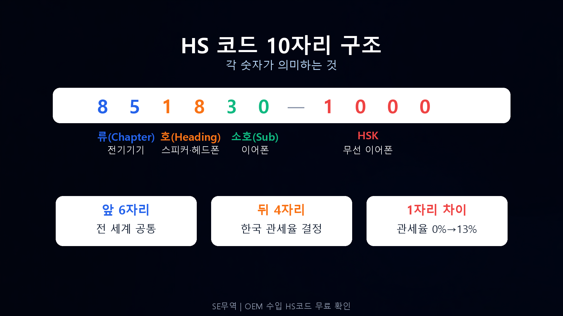 중국 OEM 수입 시 반드시 알아야 할 HS 코드의 구조, 조회 방법, 품목별 관세율표, 한중 FTA 활용법, 오분류 시 처벌까지. SE무역 실무 경험 기반 완벽 가이드.